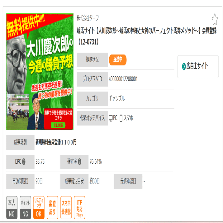 この案件は、自己アフィリNG案件ではあるんですけど、無料でメルマガ登録して、1100円なので、紹介しやすい案件です。